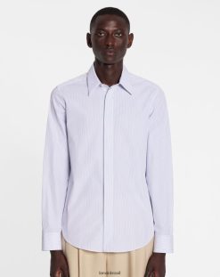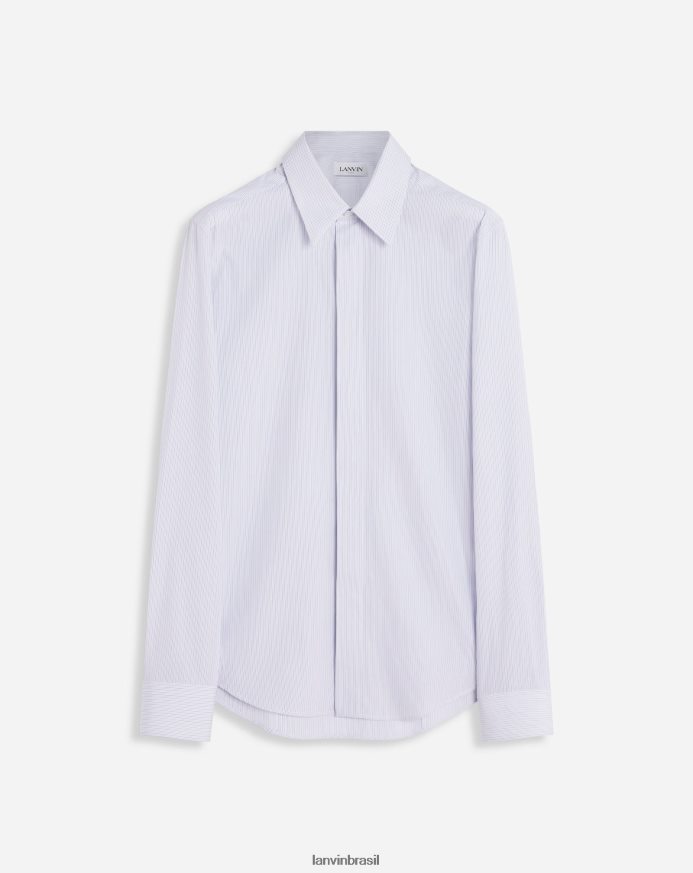 - manga longa, caimento justo, camisa em algodão clássico com mini listras popelina
