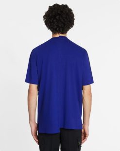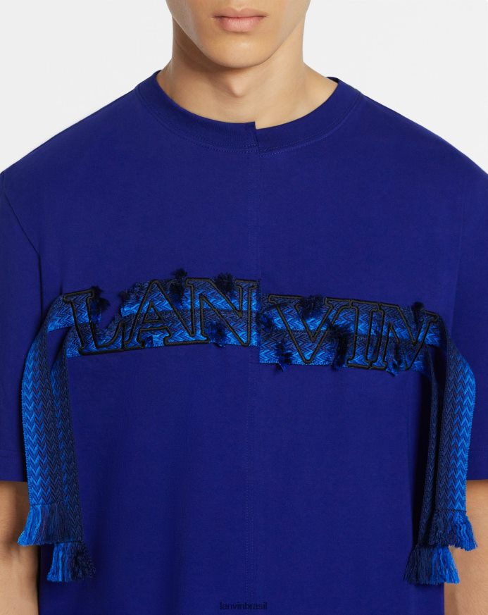 - camiseta assimétrica em jersey leve de algodão com logotipo Lanvin Curb Lace bordado na frente