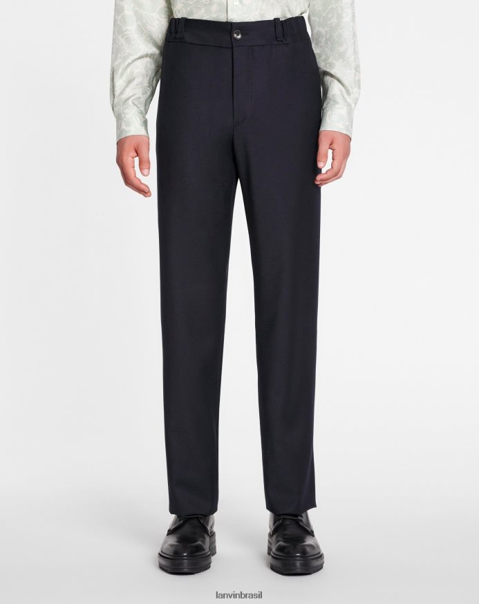 - as calças apresentam frente plana, bolsos italianos e bolsos simples nas costas.