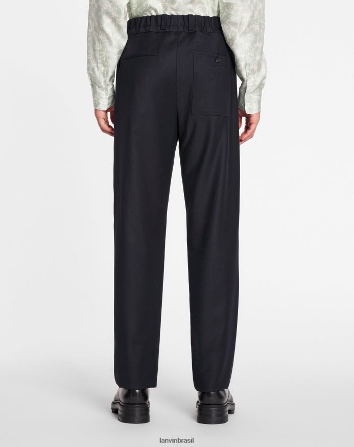 - calças elásticas sob medida em flanela lavada com cinto ajustável com cordões ocultos.