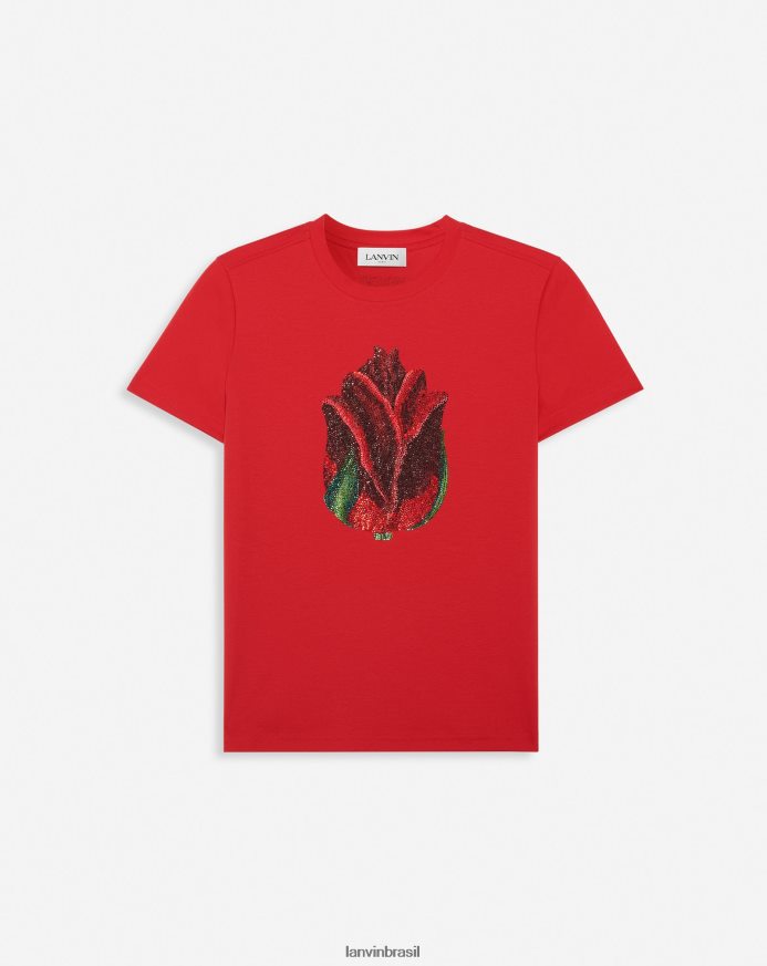 - t-shirt, corte “baby” decorada com motivo rosa em hotfix na frente. esta camiseta foi criada em colaboração com Judith Lieber.