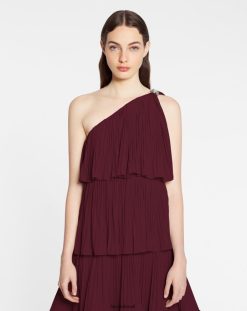 - vestido assimétrico de 3 camadas com babados em charmeuse