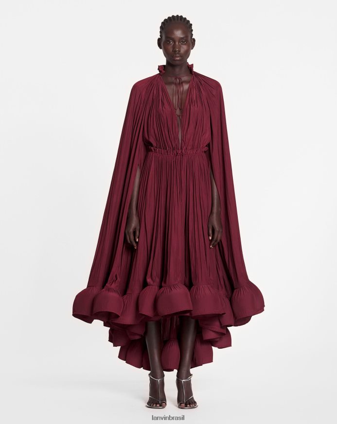 limão roupas 8V66TB67 Lanvin vestido midi flare sem mangas com decote em V em cetim mulheres