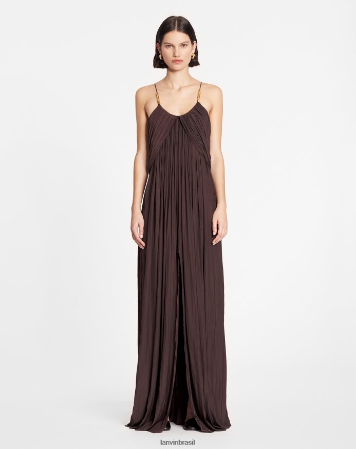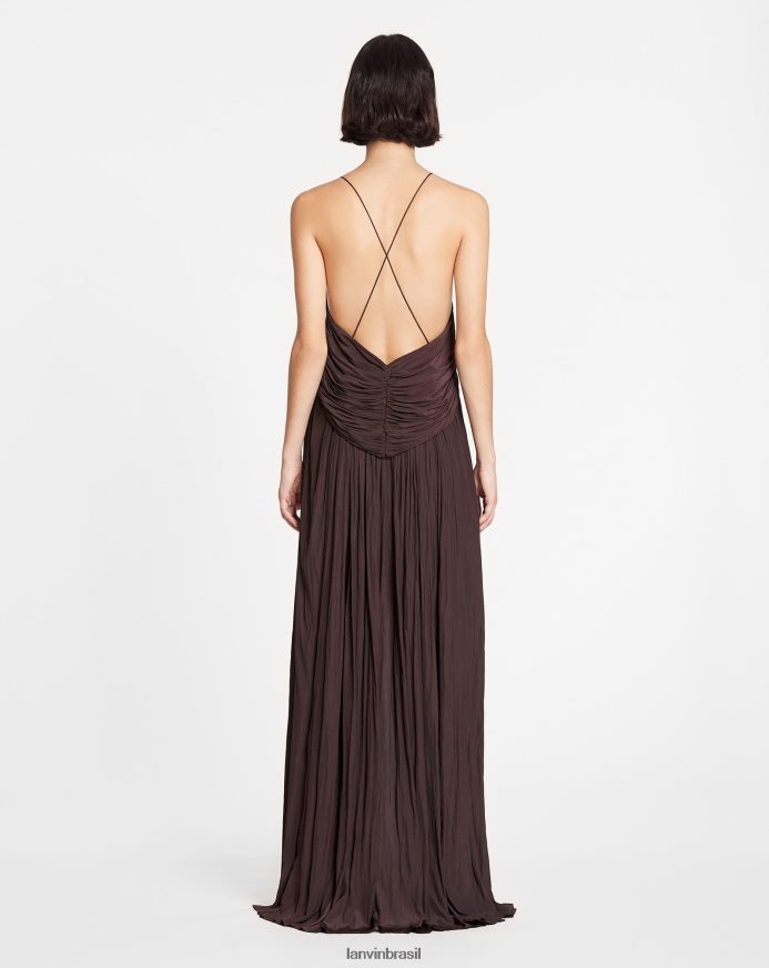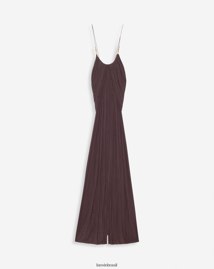 - charmeuse longo e esvoaçante liso vestido com alças cruzadas nas costas