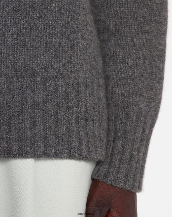 cinza escuro roupas 8V66TB277 Lanvin suéter de tricô aran em mohair escovado homens