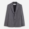 - jaqueta trespassado de um botão e bolsos com aba em lã e mohair.