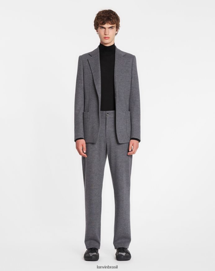 - as calças apresentam frente plana, bolsos italianos e bolsos simples nas costas.
