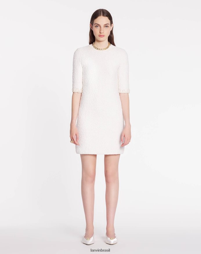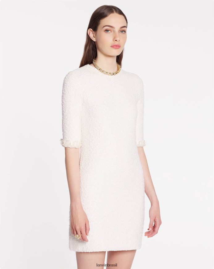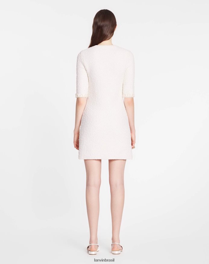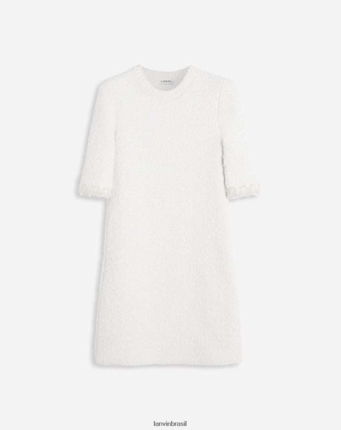 - curto vestido de manga em tweed de malha com base de algodão texturizado.