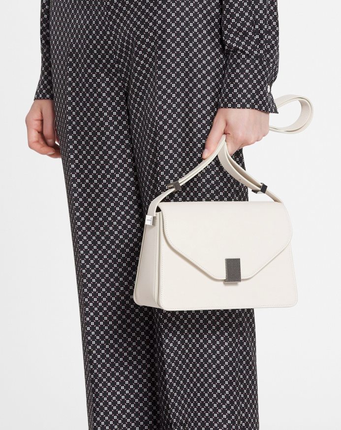 concerto é uma nova bolsa de dia contemporânea e refinada. seu fecho magnético com ponta de diamante é inspirado na forma geométrica de um icônico vestido Lanvin da coleção outono/inverno de 1934.
