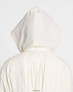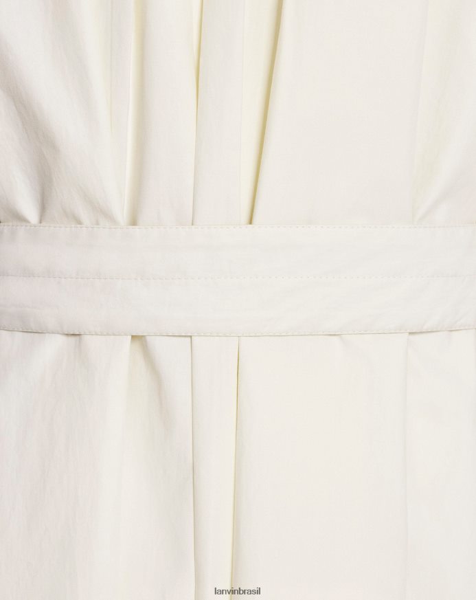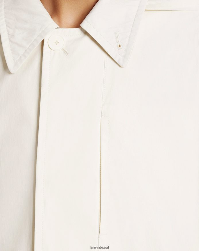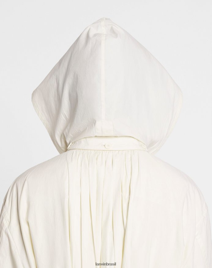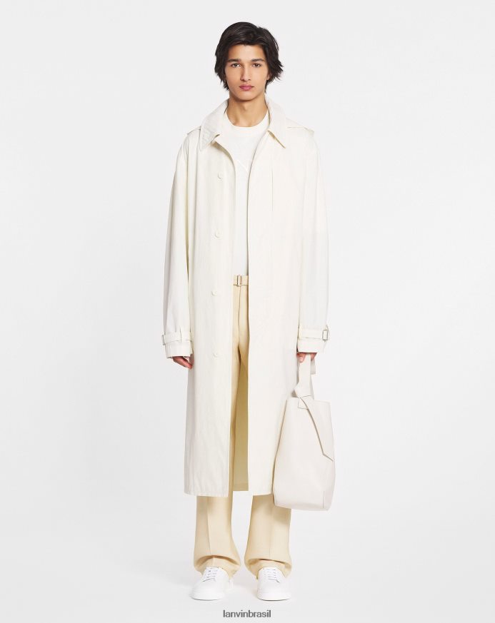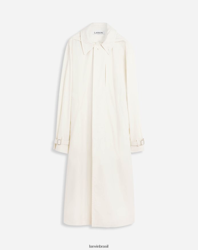 - sobretudo longo com bainha crua, capuz removível com fechos de pressão, detalhe contrastante na gola (areia em branco), aba ajustável com logotipo “lanvin”, cinto de ajuste interno, pregas nas costas e fivela “lanvin” gravada