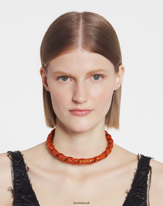 a linha melodie homenageia todos os vestidos de jeanne lanvin chamados “melodie” criados entre 1921 e 1939. este colar melodie combina feminilidade com elegância, engastado com strass e envolto em uma fita de metal.