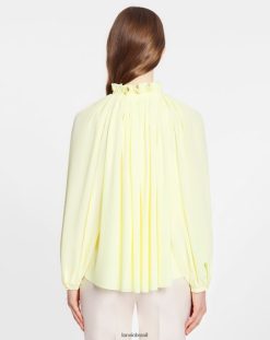 limão roupas 8V66TB29 Lanvin blusa manga longa com gola aberta e babados em seda clara mulheres