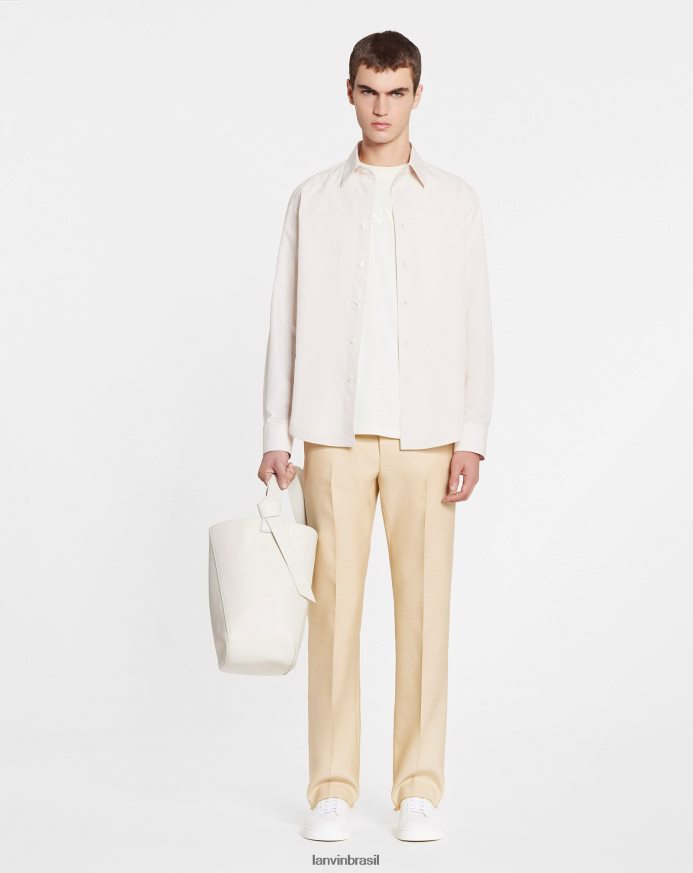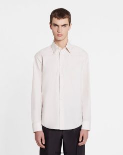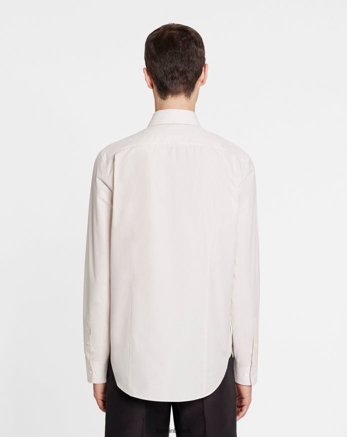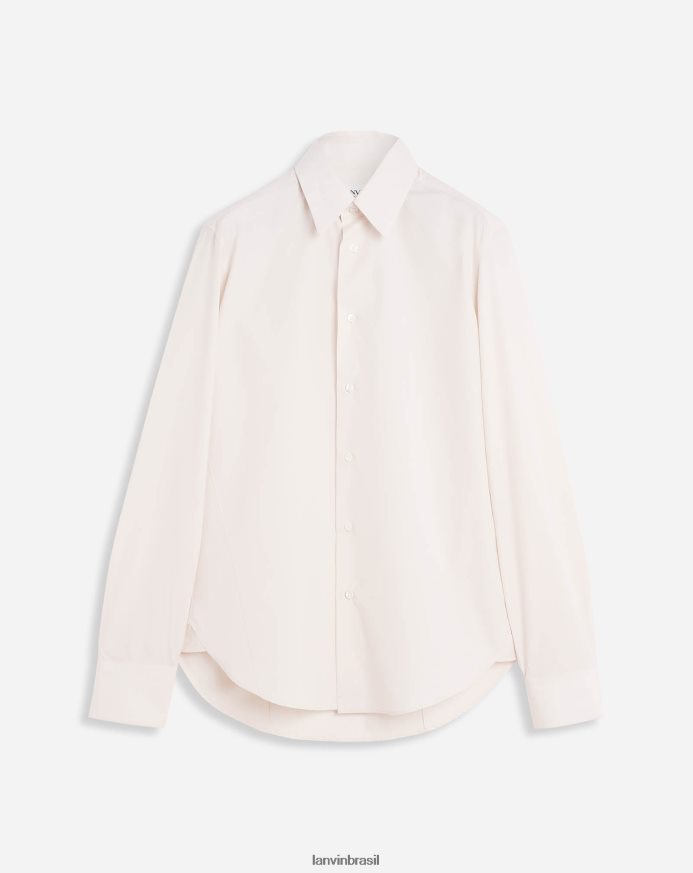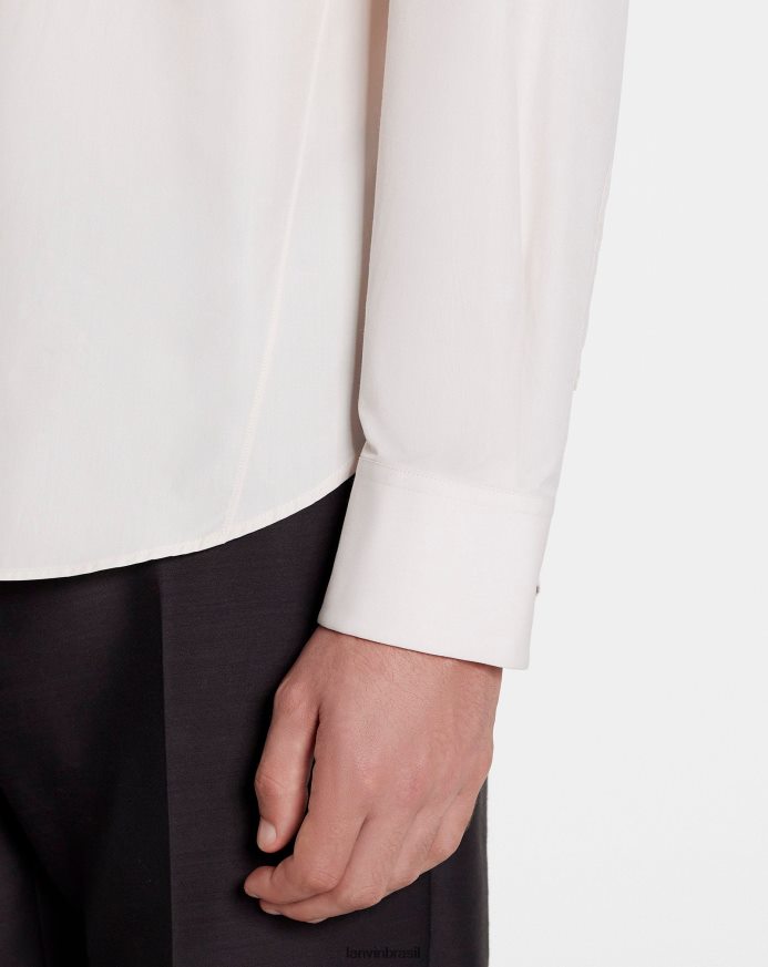 - camisa justa de popeline de algodão com mangas compridas, gola clássica e carcela de botões visíveis