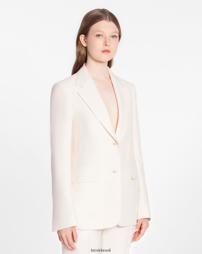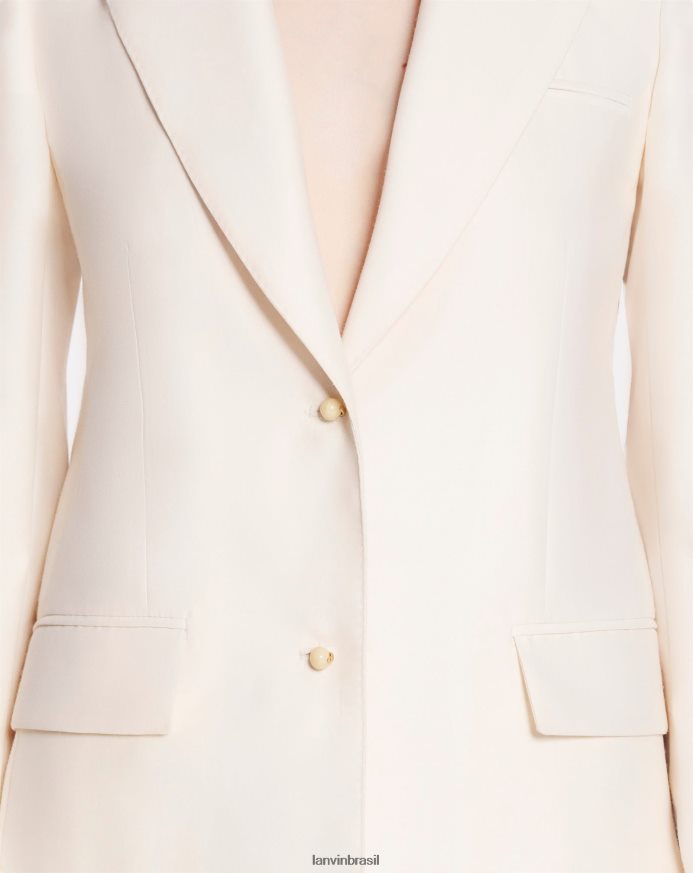 - como na alfaiataria masculina clássica, a etiqueta Lanvin está acima do bolso esquerdo do peito.