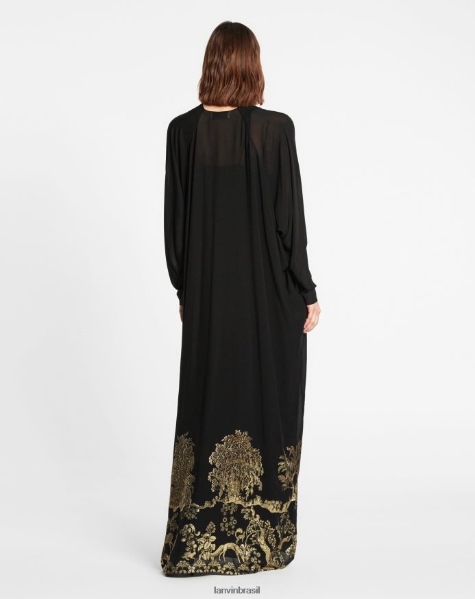 - vestido longo caftan com mangas raglan em georgette de seda semitransparente e fluida