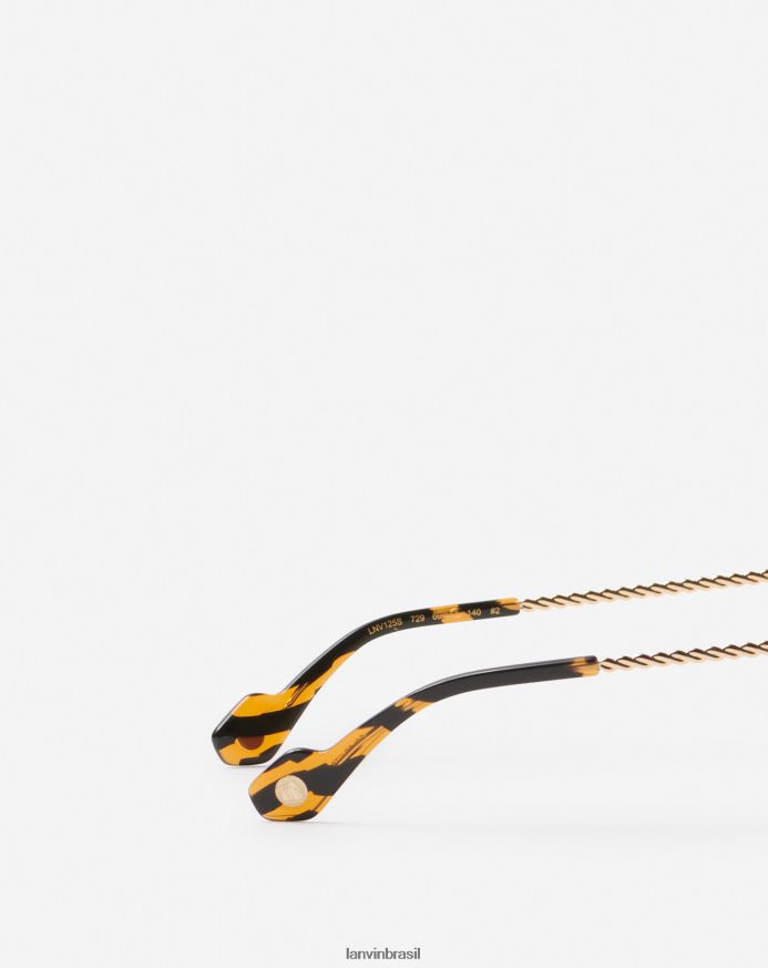 - esses óculos quadrados grandes são caracterizados por suas hastes metálicas torcidas e um detalhe listrado de acetato personalizado com o logotipo da mãe e do filho nas extremidades.