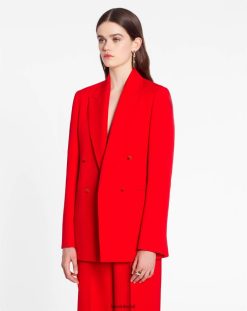 papoula vermelha roupas 8V66TB478 Lanvin blazer de alfaiataria trespassado mulheres