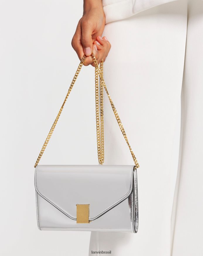 a carteira concerto com corrente é uma reinterpretação da clutch noturna. uma adição elegante, seu fecho magnético com ponta de diamante é inspirado no formato geométrico do vestido Lanvin da coleção outono/inverno de 1934.