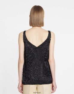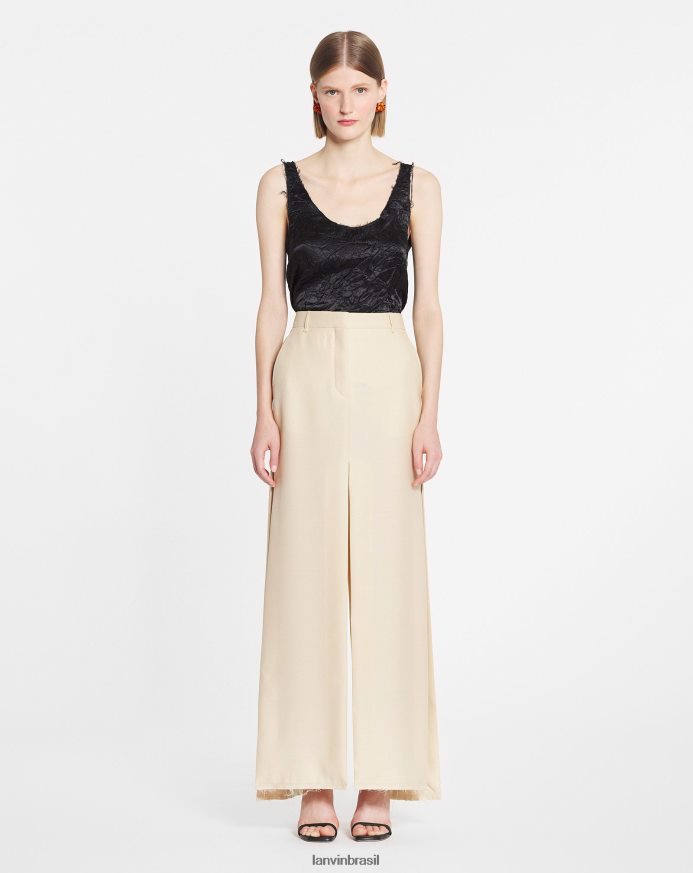 - Regata de cetim enrugado brilhante com gola redonda, costas em V e bainha crua