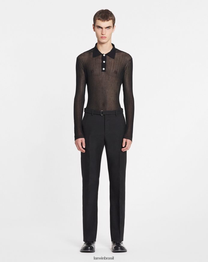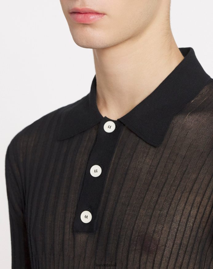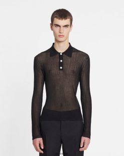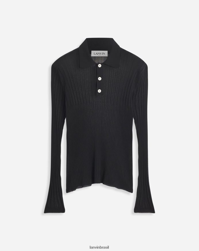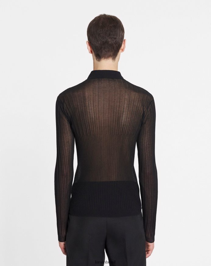 - Polo transparente em seda e algodão com gola redonda e mangas compridas