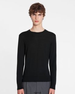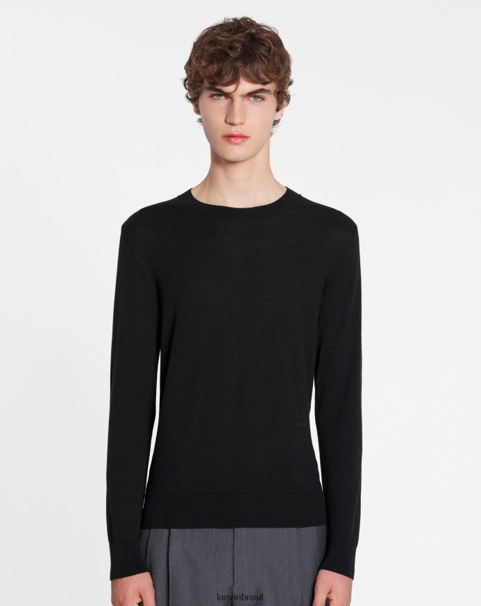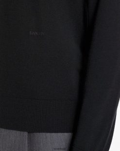 preto roupas 8V66TB111 Lanvin suéter com capuz bordado paris mulheres