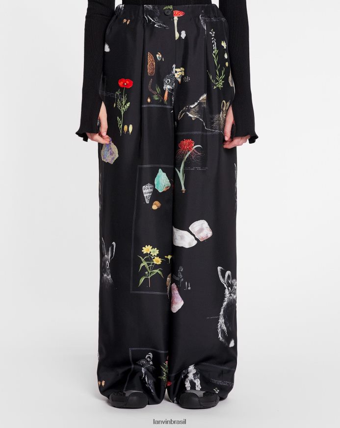 preto roupas 8V66TB463 Lanvin calça fluida estampada de perna larga em seda mulheres