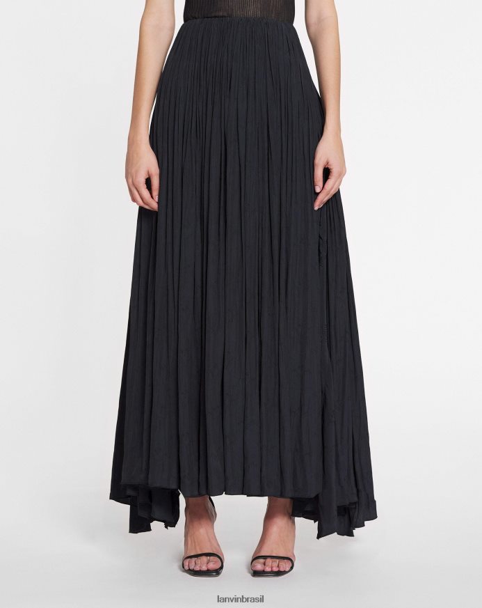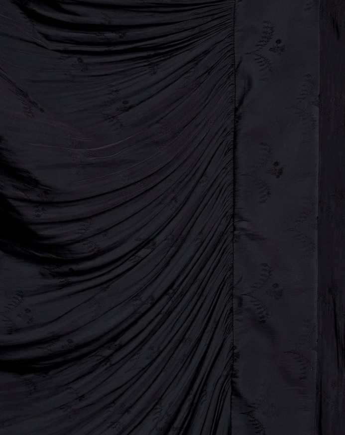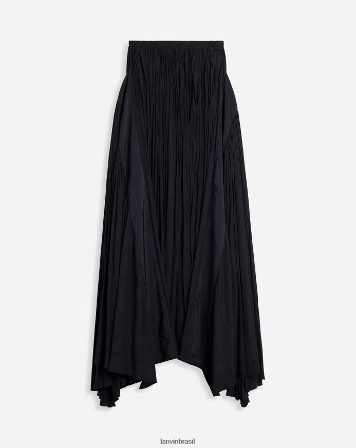 - plissado longo saia em jacquard floral charmeuse com franzido e comprimento assimétrico