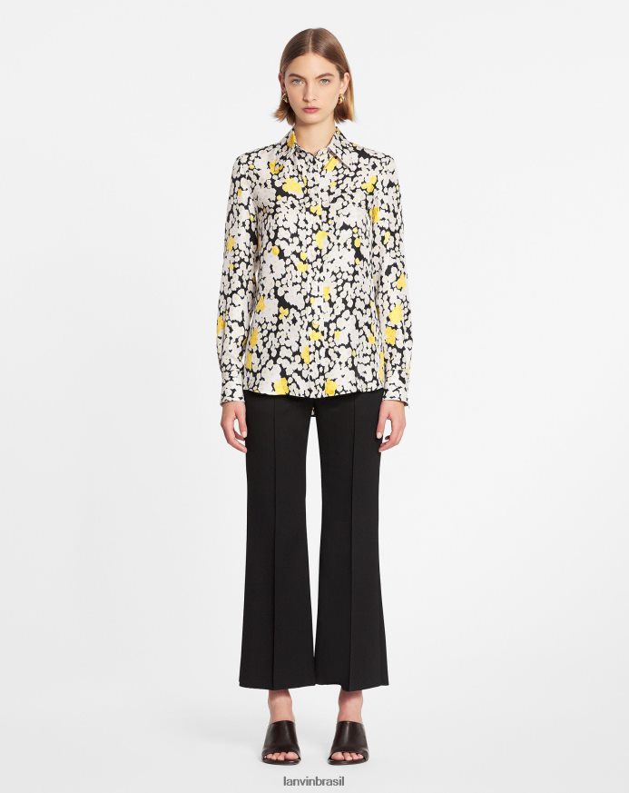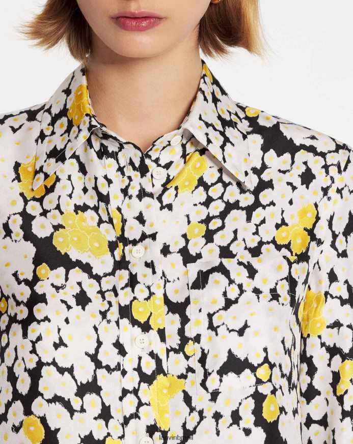 a estampa desta camisa é uma homenagem à filha de Jeanne Lanvin, Marguerite. desenhada exclusivamente para a lanvin, apresenta pequenos buquês de margaridas espalhados pelo tecido.