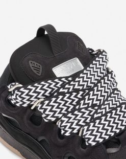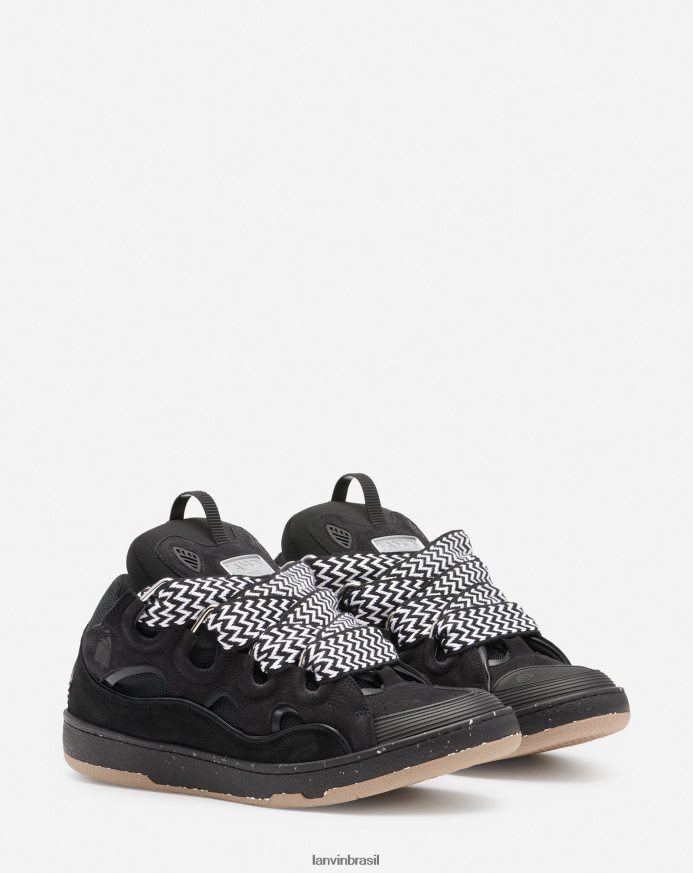 o meio-fio é um tênis inspirado nos anos 90, com design confiante e dimensões exageradas. confeccionado em couro de bezerro napa, camurça e mesh, esse sapato de construção elaborada se destaca pelo extraordinário conforto graças ao formato arredondado, língua acolchoada e ilhós metálicos curvos.
