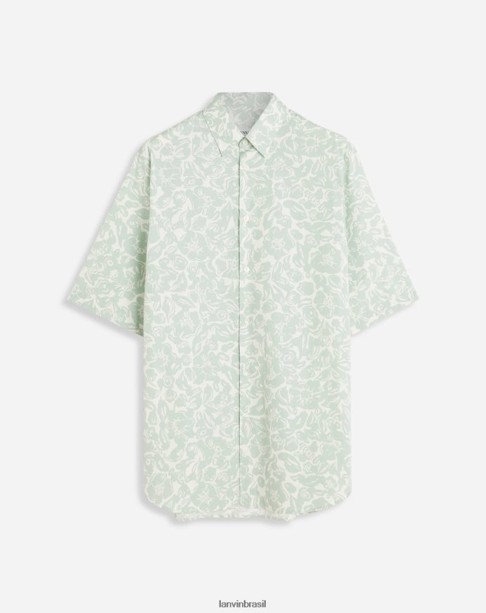 - manga curta, corte oversized, camisa em popeline compacta de algodão com allover “abstract estampa de flor”.