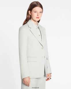 - como na alfaiataria masculina clássica, a etiqueta Lanvin está acima, dentro do bolso esquerdo do peito.