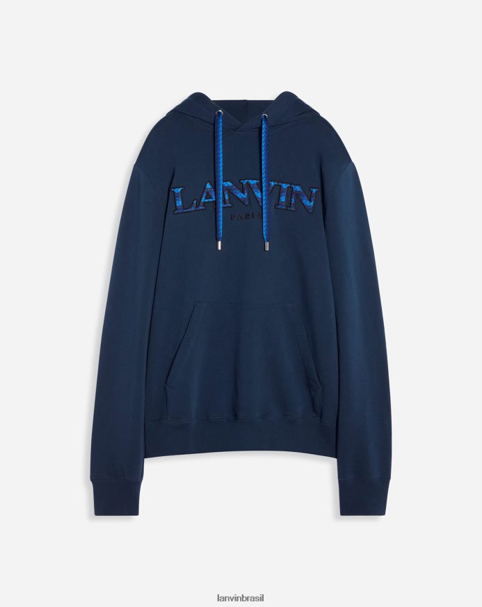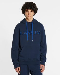 - suéter com capuz em lã de algodão adornado com o logotipo lanvin meio-fio bordado no cordões na frente e no meio-fio a condizer