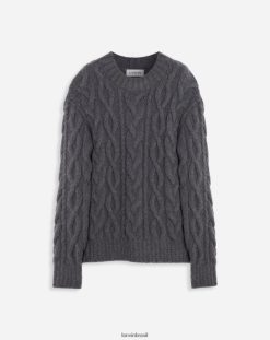cinza escuro roupas 8V66TB277 Lanvin suéter de tricô aran em mohair escovado homens