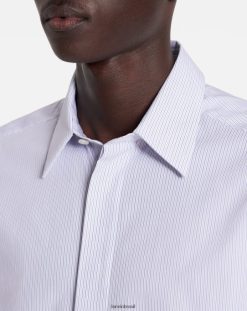 - manga longa, caimento justo, camisa em algodão clássico com mini listras popelina