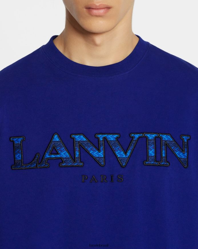 azul majorelle roupas 8V66TB254 Lanvin camiseta bordada na calçada homens