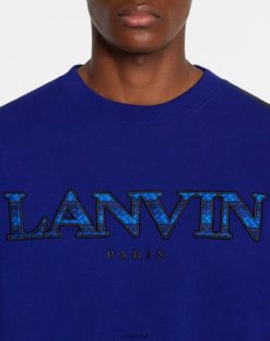 azul majorelle roupas 8V66TB276 Lanvin moletom bordado meio-fio homens