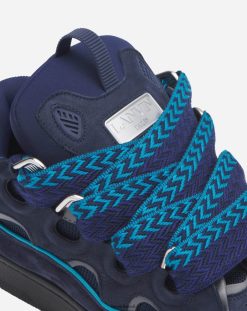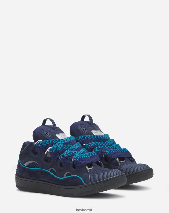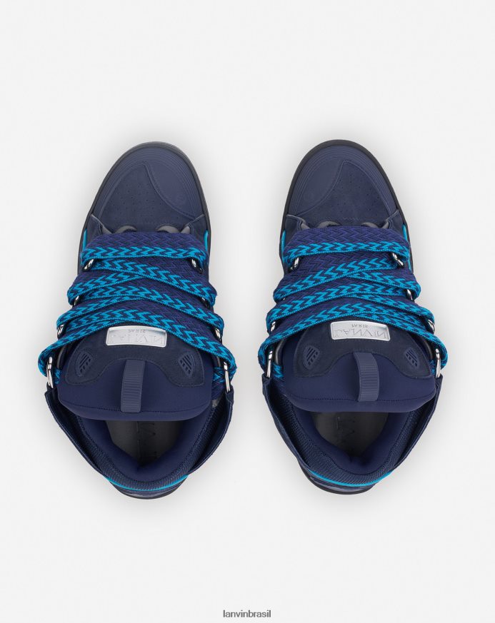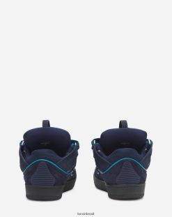 azul marinho/cinza sapato 8V66TB385 Lanvin tênis de couro homens