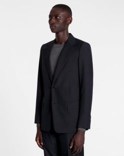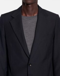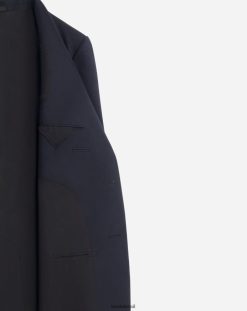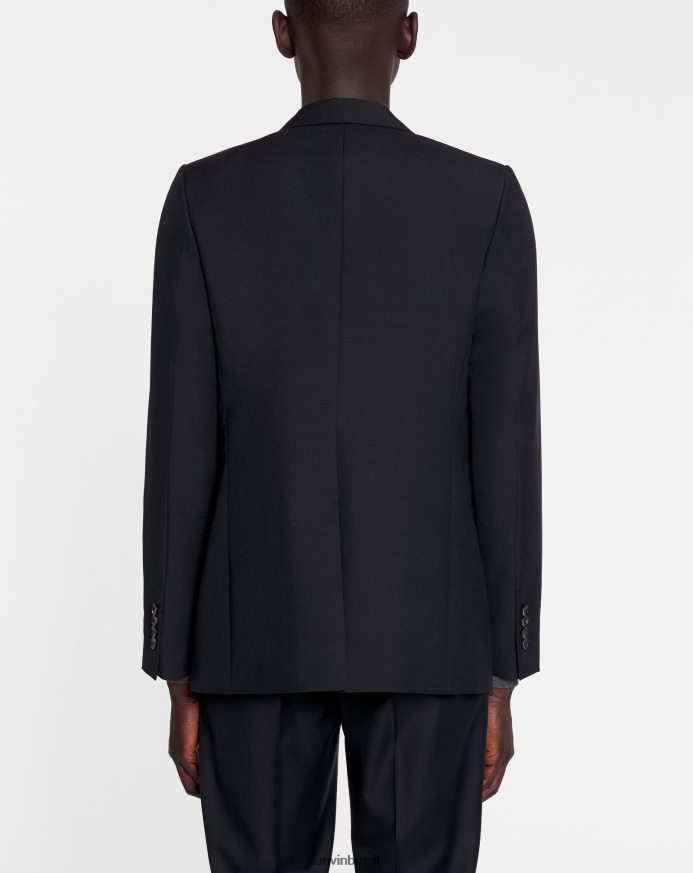azul-marinho roupas 8V66TB335 Lanvin jaqueta com bolsos e aba simples homens