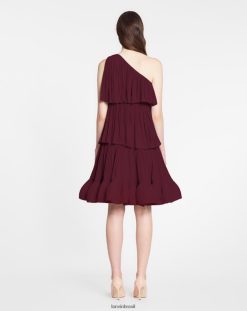 - vestido assimétrico de 3 camadas com babados em charmeuse