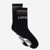 - meias lanvin em tecido técnico com logotipo lanvin, logotipo mãe e filho e detalhe de renda no meio-fio