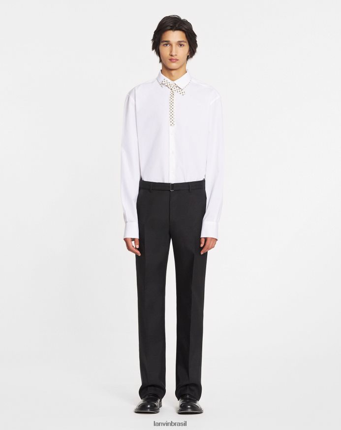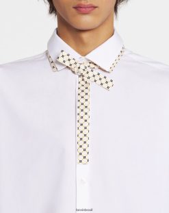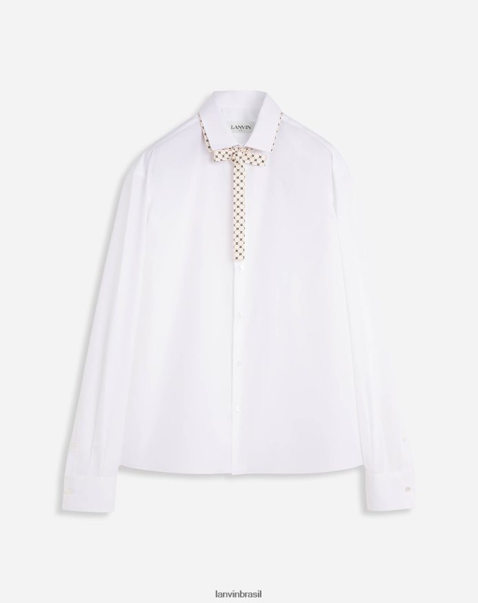 - camisa quadrada com gola dupla e gravata contrastante.