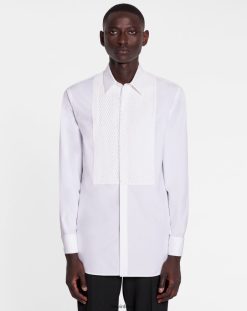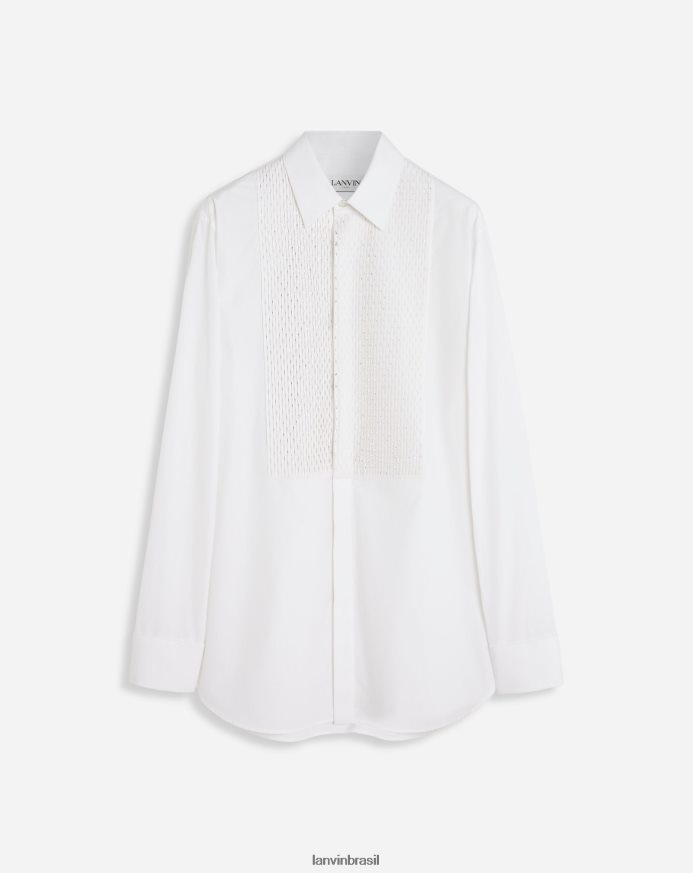 branco óptico roupas 8V66TB303 Lanvin camisa regular fit com plastrão bordado homens