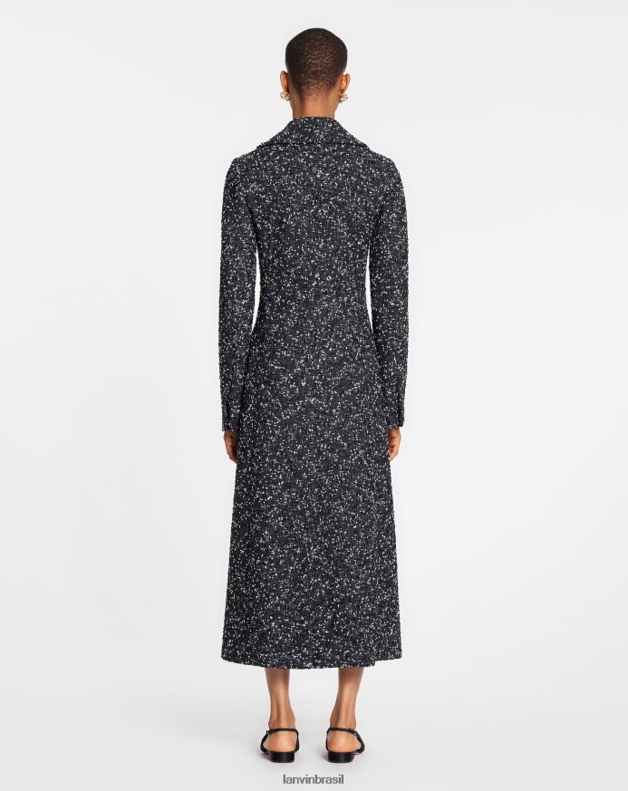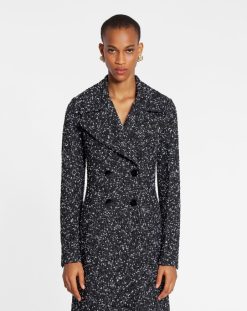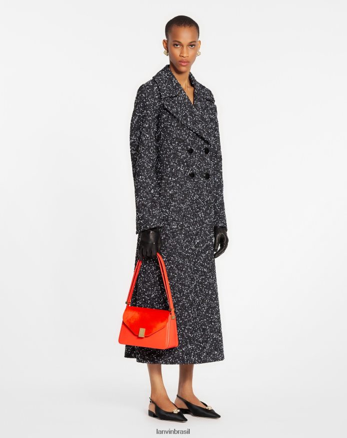 Branco preto roupas 8V66TB487 Lanvin casaco de alfaiataria trespassado duplo em tweed mulheres