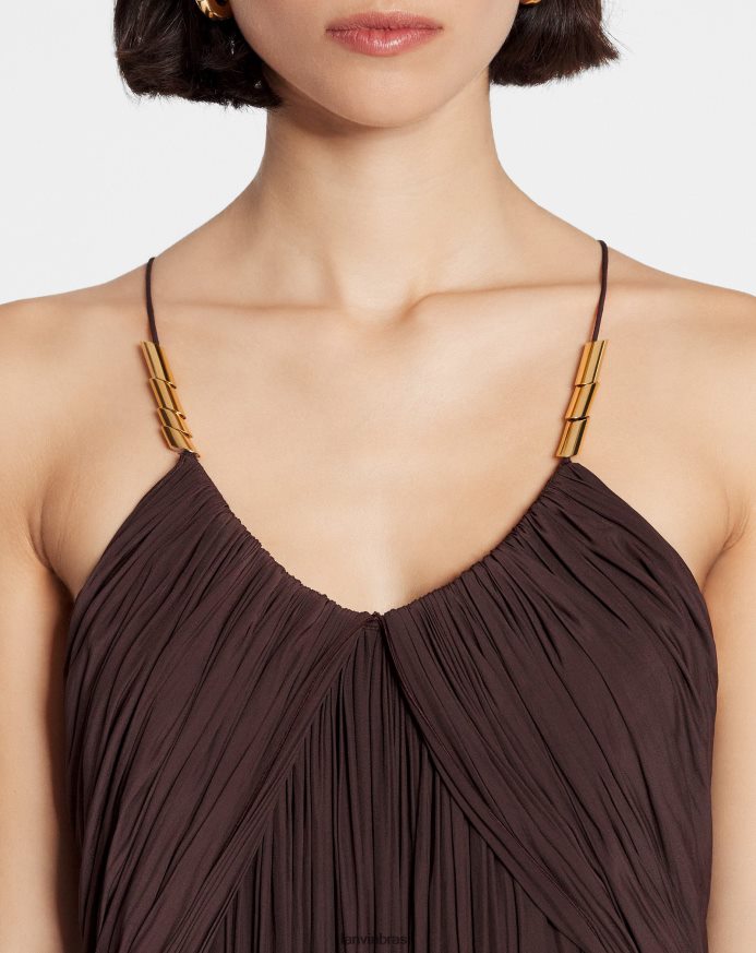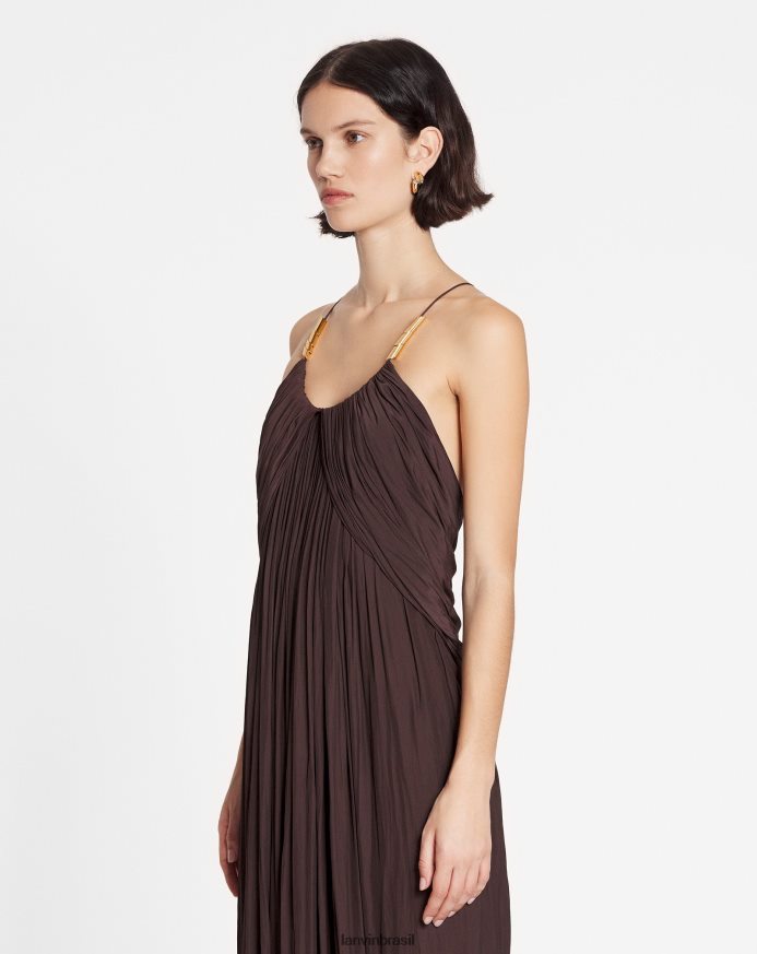 - charmeuse longo e esvoaçante liso vestido com alças cruzadas nas costas