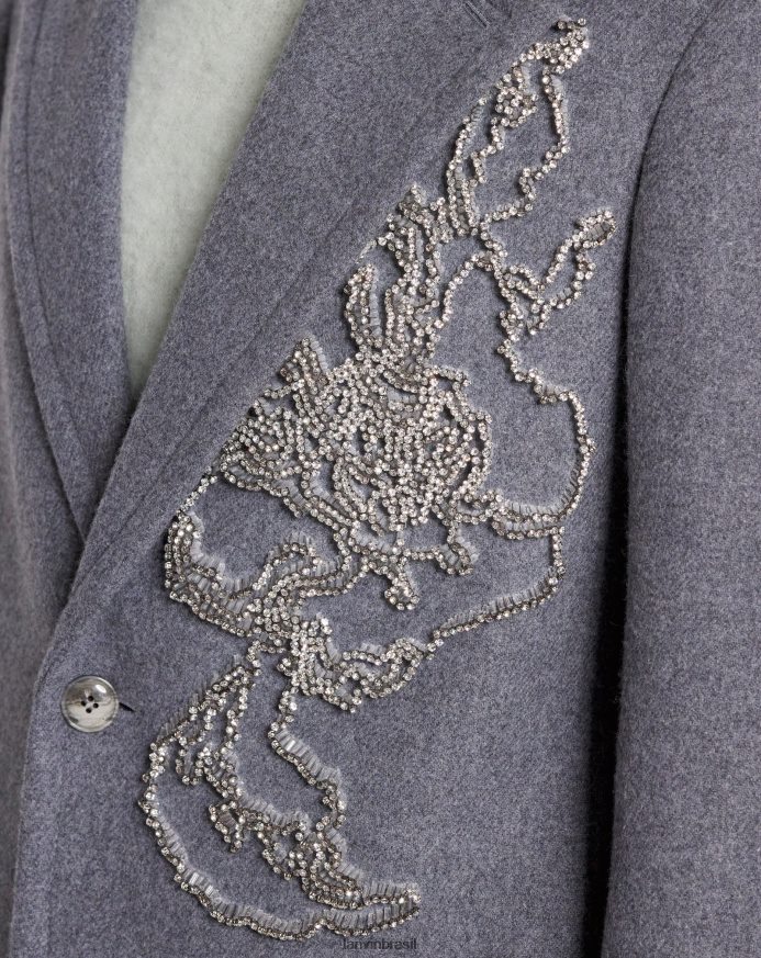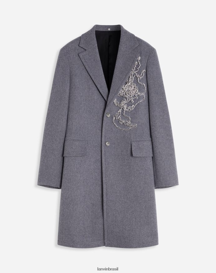 cinza escuro roupas 8V66TB325 Lanvin casaco clássico trespassado com bordados homens
