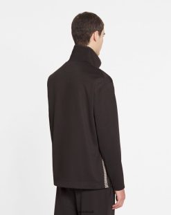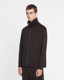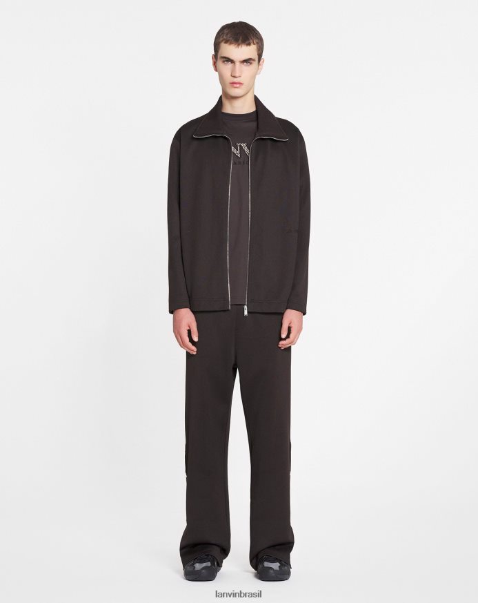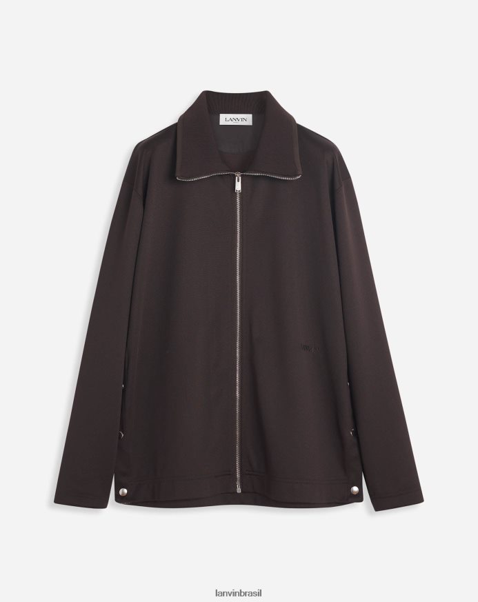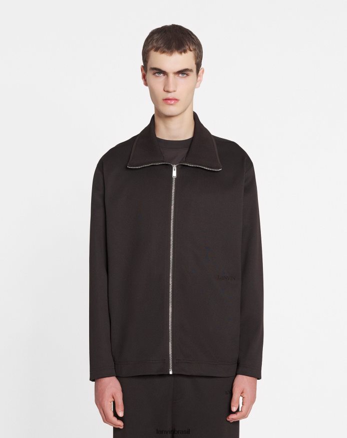 - top de moletom com zíper completo, detalhes canelados nas mangas e na gola, gola trucker e logotipo “lanvin” bordado na lateral