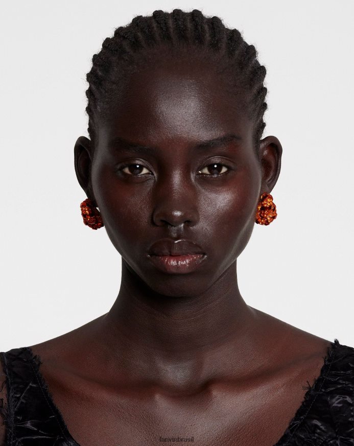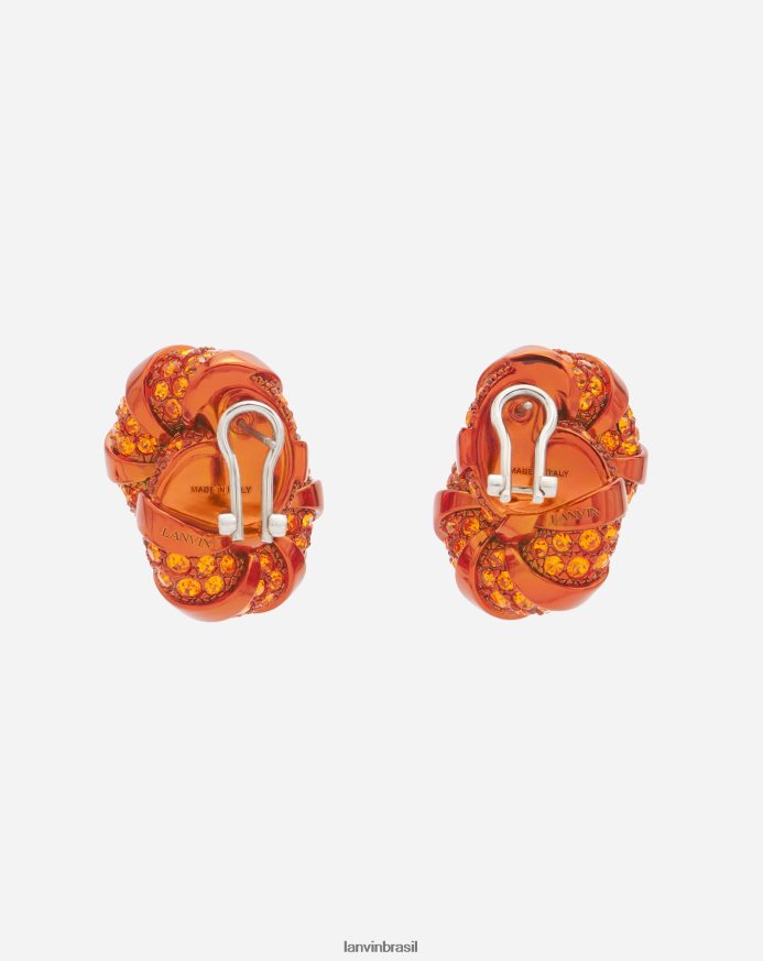 a linha melodie homenageia todos os vestidos de Jeanne Lanvin chamados “melodie” criados entre 1921 e 1939. Os brincos melodie combinam feminilidade com elegância, incrustados com strass e envoltos em uma fita de metal.