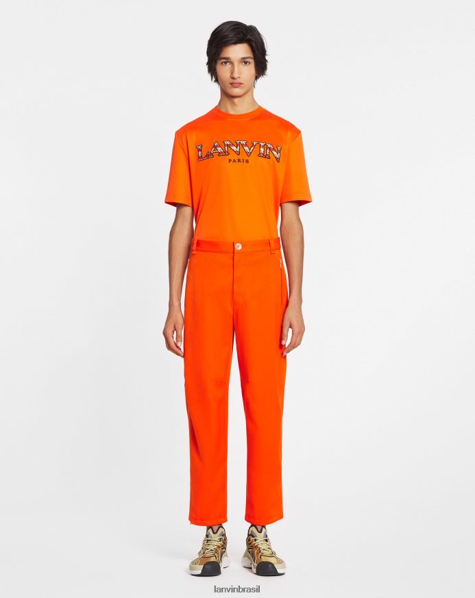 laranja brilhante roupas 8V66TB374 Lanvin calças de motociclista homens