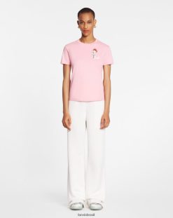 - camiseta clássica em jersey de algodão com efeito de forro visível em tule e bordado