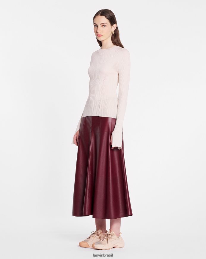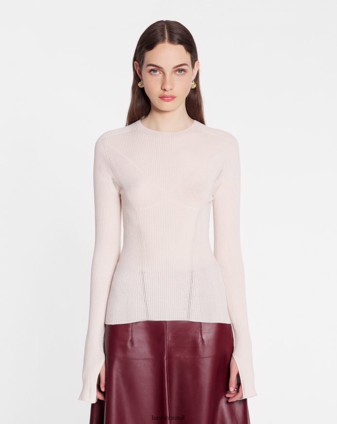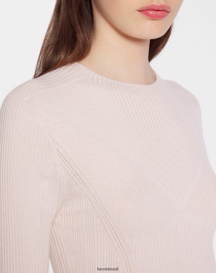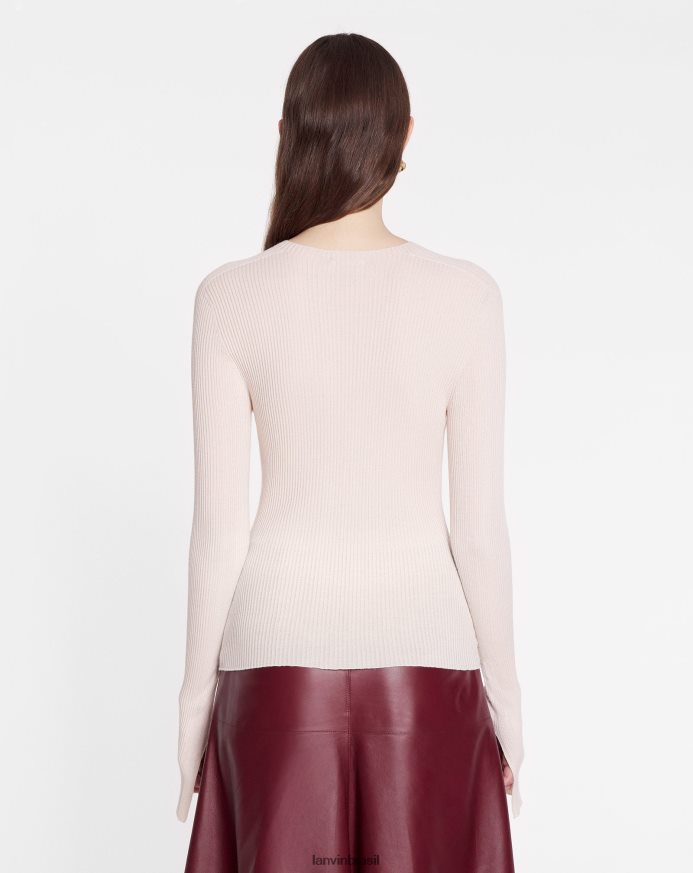 luz rosa roupas 8V66TB39 Lanvin top canelado de manga comprida com decote redondo em seda e caxemira mulheres